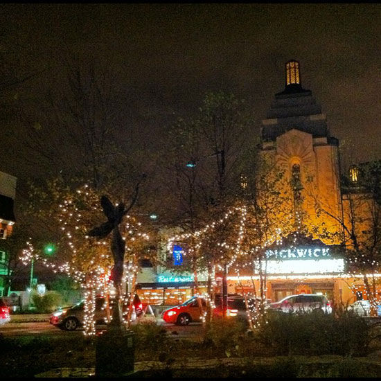 Christmas lights up around our building