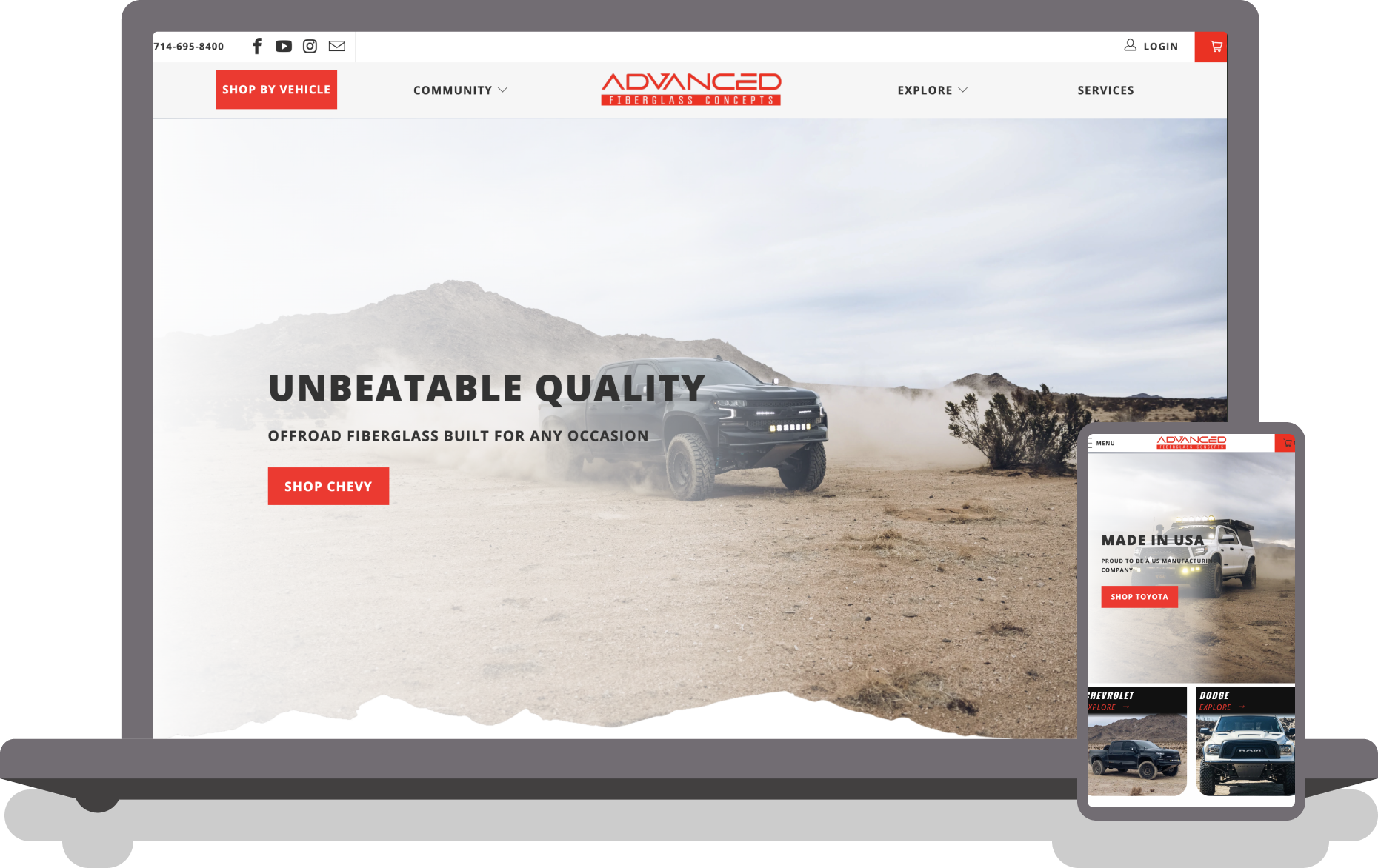 Advanced Fiberglass Concepts designs and manufactures the highest-quality fiberglass aftermarket automotive parts for off-road vehicles. This family-owned business uses only the best materials to ensure durability and proper fitment and all their manufacturing is hand-laid and done right here in the United States. In addition to selling their extensive line of products direct-to-consumer, they also do custom projects and private-label services.