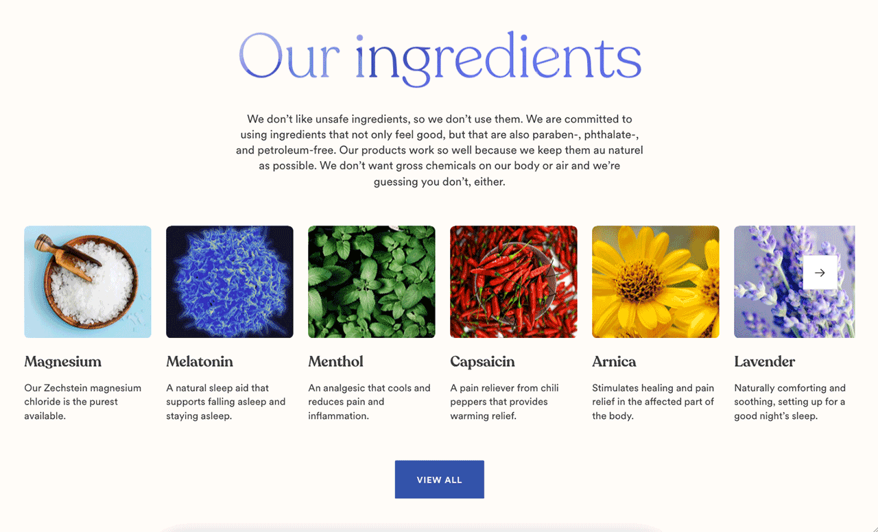 Special collection pages were designed to help tell a full story of how Asutra products can help with sleep, pain relief and skin care. We created a flexible template that features a combination of text, images, product listings and videos. The sections are customizable and we made it easy for the Asutra team to be able to swap content in and out and move sections as needed. Having the types of content mixed together offers an engaging experience on desktop, but on a smaller screen it can interrupt the shopping experience, so we created a separate mobile layout that groups the content by type. The new site features a lot more video content, particularly on the product and special collection pages, allowing Asutra to adopt more of a multimedia approach for their shopping experience.