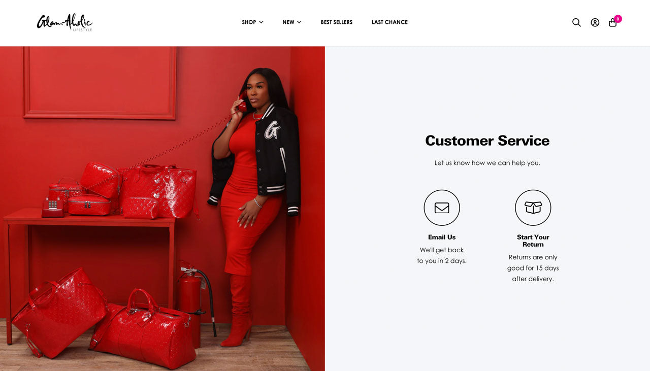 We built custom pages including a “Care Guide” for the materials used in the products, a page for bulk orders, a revamped FAQ page, making use of some of Glam-Aholic’s amazing photography and including touches such as clearer call-to-action buttons on the FAQ page to start a return. With custom-built metafields, it’s easier for Glam-Aholic to add new products to the site using their main PDP template by simply filling in a few details and selecting a few options. To help them get set up more quickly before the launch of the new site, we went through Glam-Aholic's catalog of about 400 products and tagged each with the style, color, size, material and features. We also offered breakdowns on how to use the metafields to make it easier for the team to manage the site content going forward. We made some customizations based on Glam-Aholic’s use of product drops. The company does previews of what they plan to either restock or newly launch and drops them on specific dates. Originally, they had an app installed which allowed them to mark products as “coming soon”, but it only did so on the product page itself. Customers were still able to add the product to their cart from collection pages and search results and purchase it. We jumped in and solved the issue by building a “Coming Soon” template that allowed Glam-Aholic to show upcoming drops without allowing people to add the products to the cart. We also made space in the mega menu to feature upcoming drops. Leslie says that she appreciated how knowledgeable and responsive we were throughout our work together.