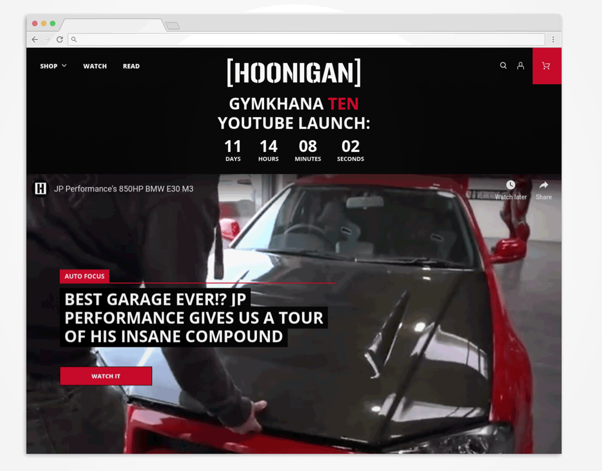 Hoonigan is an automotive lifestyle brand with a fanatic audience base. Conceived by Ken Block and Brian Scotto, the company makes cars fun through experiential events, media, apparel, and product collaborations. When Hoonigan started to grow rapidly, it became clear their previous ecommerce provider was overly complex and couldn’t scale with the agility they needed. After learning about the world of developer plugins and features from Shopify Plus, Hoonigan knew it was time to make the move.