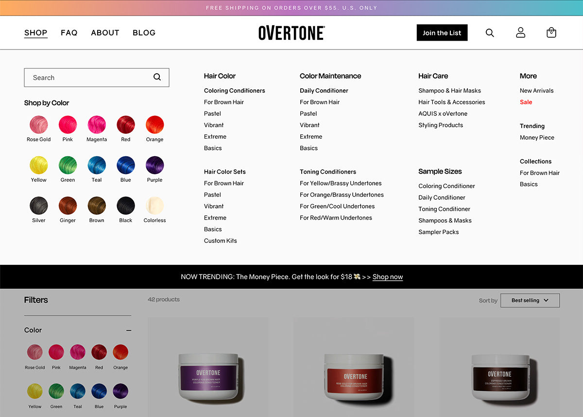 oVertone Haircare is a predominantly DTC eCommerce brand with a great product and loyal customer base. Their line of pigmented conditioners offer a hair-healthy, semi-permanent, and 100% cruelty-free alternative to hair dye to help customers achieve and maintain head-turning hair colors. The company was doing an impressive $30 million in sales, but wasn’t profitable, in part due to spending about $3 million in tech and IT staff to run and support their online store, which was a custom-built headless Shopify site. Seeing the opportunity to optimize the business and increase profitability, Ezra Firestone bought oVertone along with Drew Sanocki and other private equity partners. They immediately set out to streamline operations, including simplifying the site’s tech stack to just Shopify. Maintaining and updating the headless site was a lengthy and cumbersome process and was impossible to do without involving developers. Ashley Sorensen, who was brought on as the company’s new president, says that everything from standing up a new page to swapping in a new banner image to making a change to product description text required back-end coding.