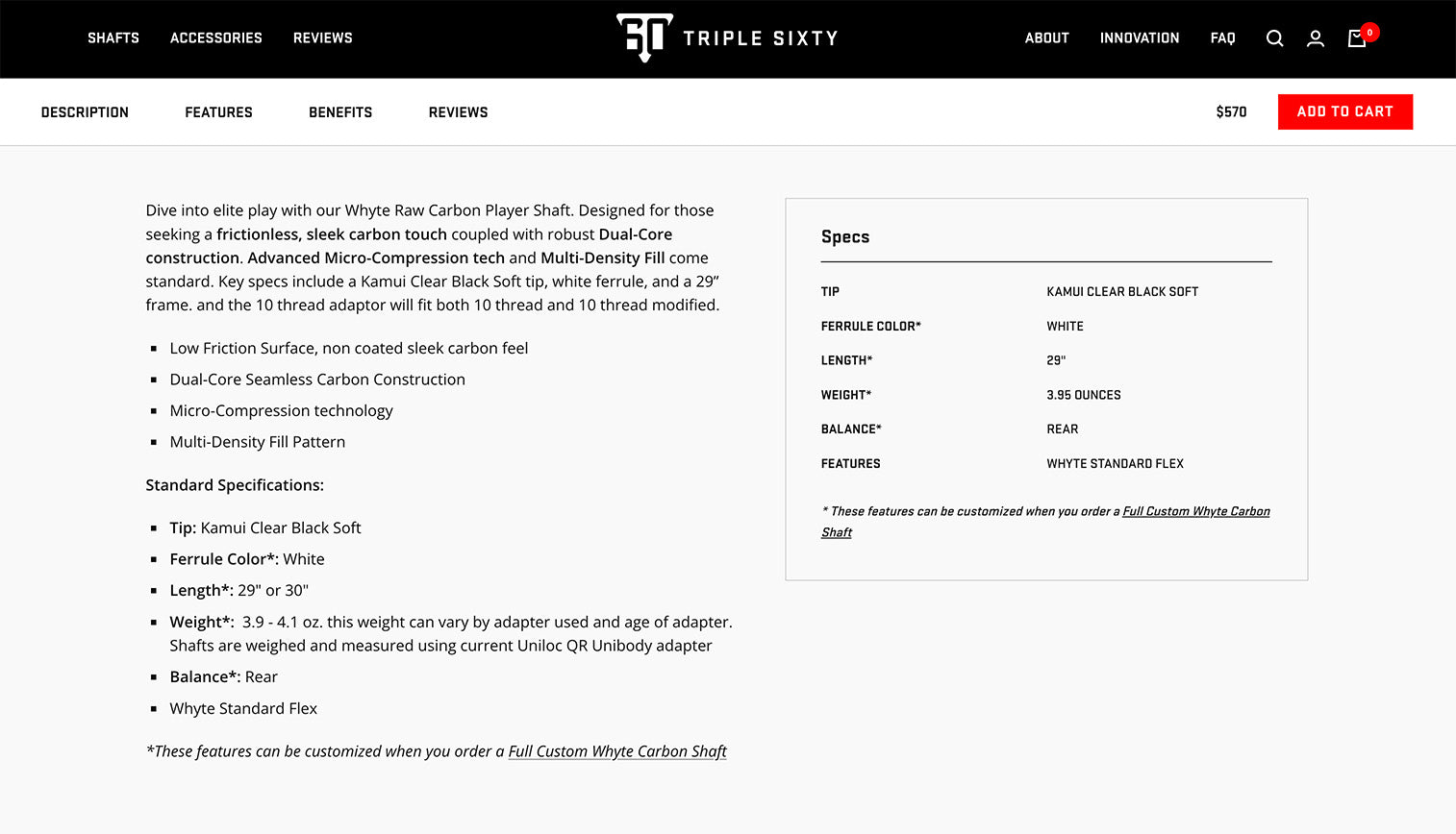 The Whyte Carbon site was built on the Shopify platform. Being aware of Ethercycle through listening to the Unofficial Shopify Podcast, Mark reached out to us to create a new theme for the Triple 60 store and deliver an improved online shopping experience.
