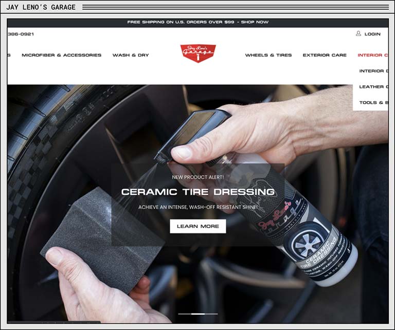 WORLD-RENOWNED CAR GUY JAY LENO GROWS HIS SHOPIFY PLUS AUTOMOTIVE CARE STORE WITH AN ETHERCYCLE REDESIGN.